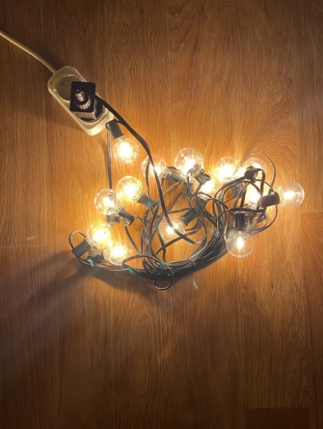 Все працює, на шнурі з одного боку вилка, з іншого боку штекер, можна приєднати ще одну гірлянду. На кожній лампочці є гачки щоб підвішати.